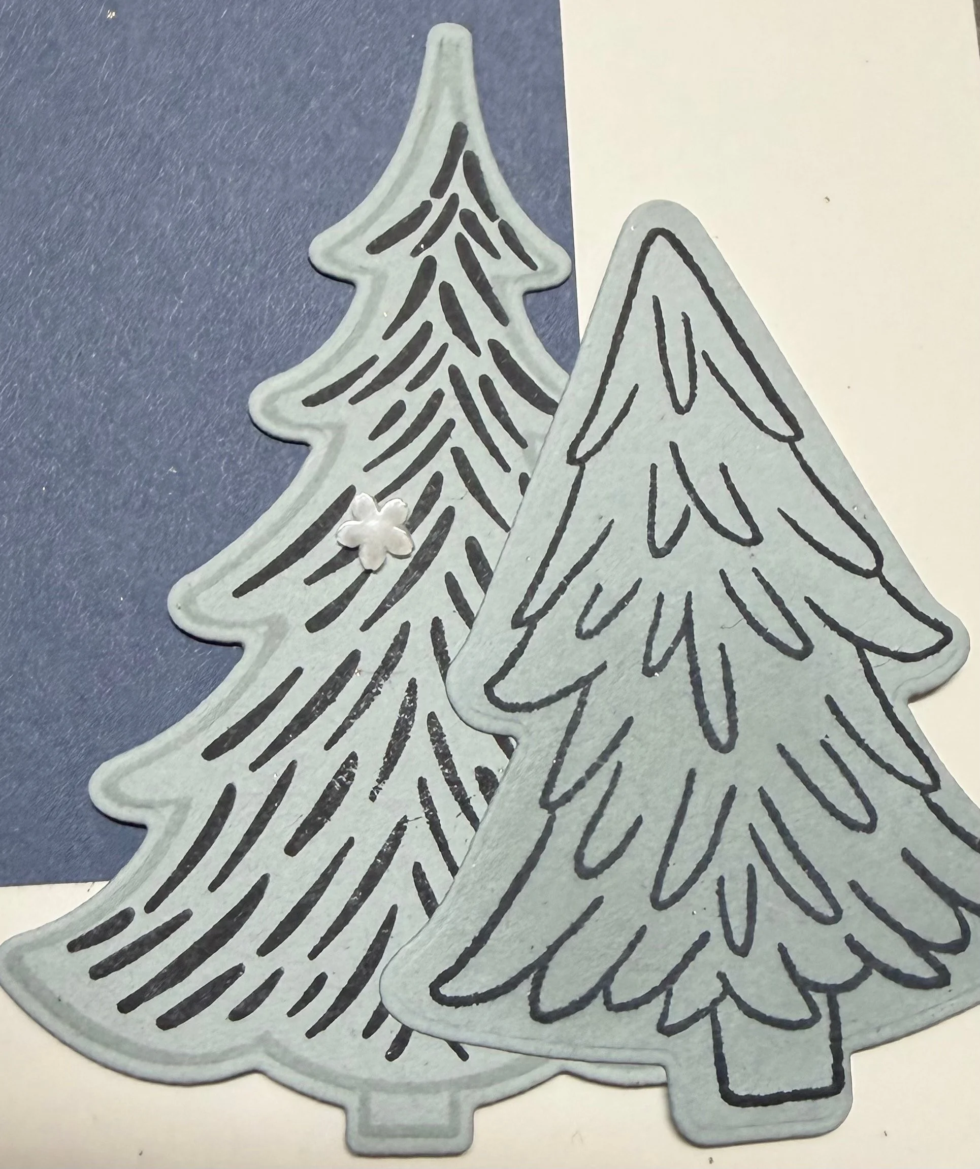 Begin by using the tearing technique….tear Basic White Cardstock and adhere it to Misty Moonlight Cardstock