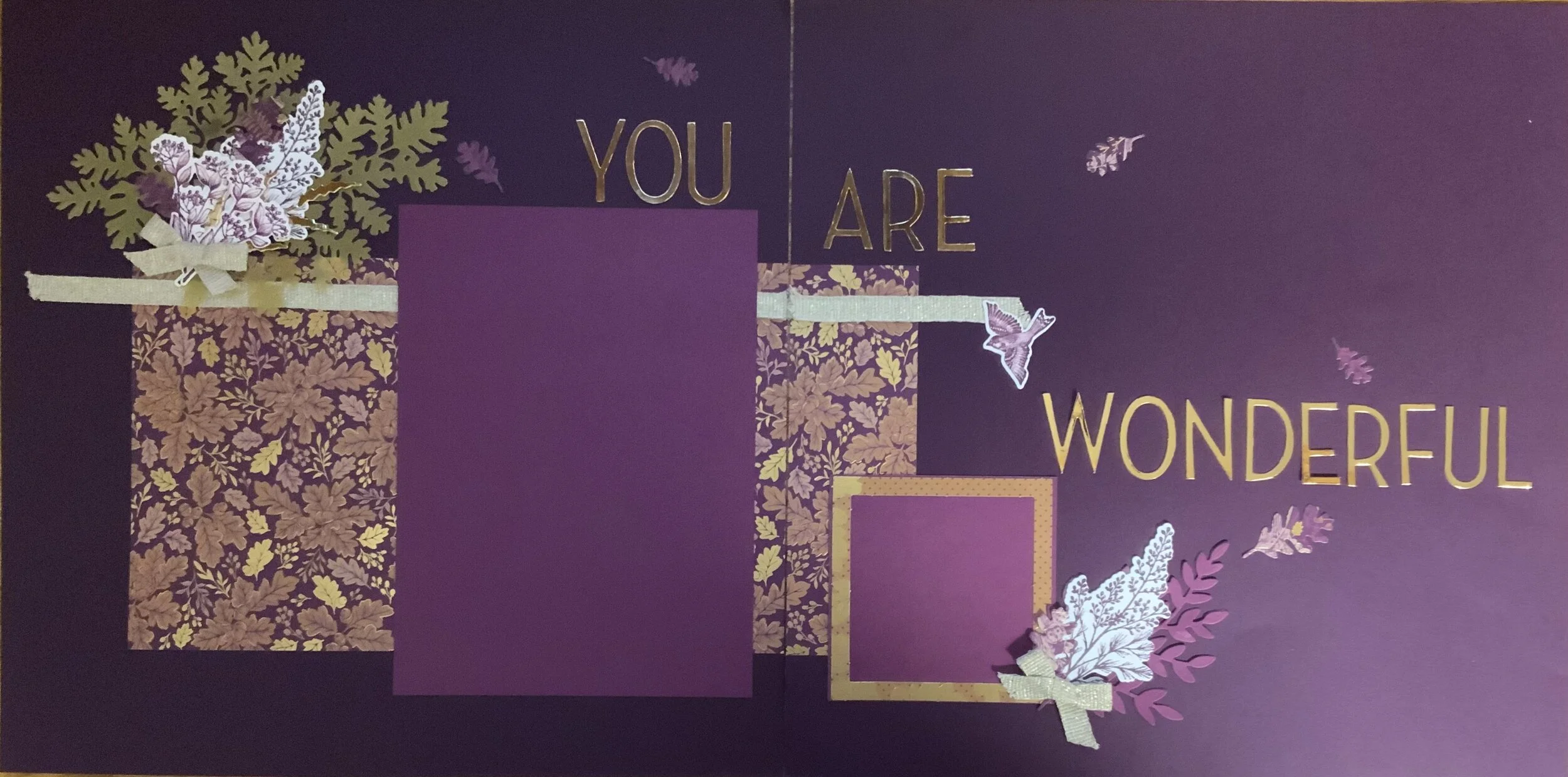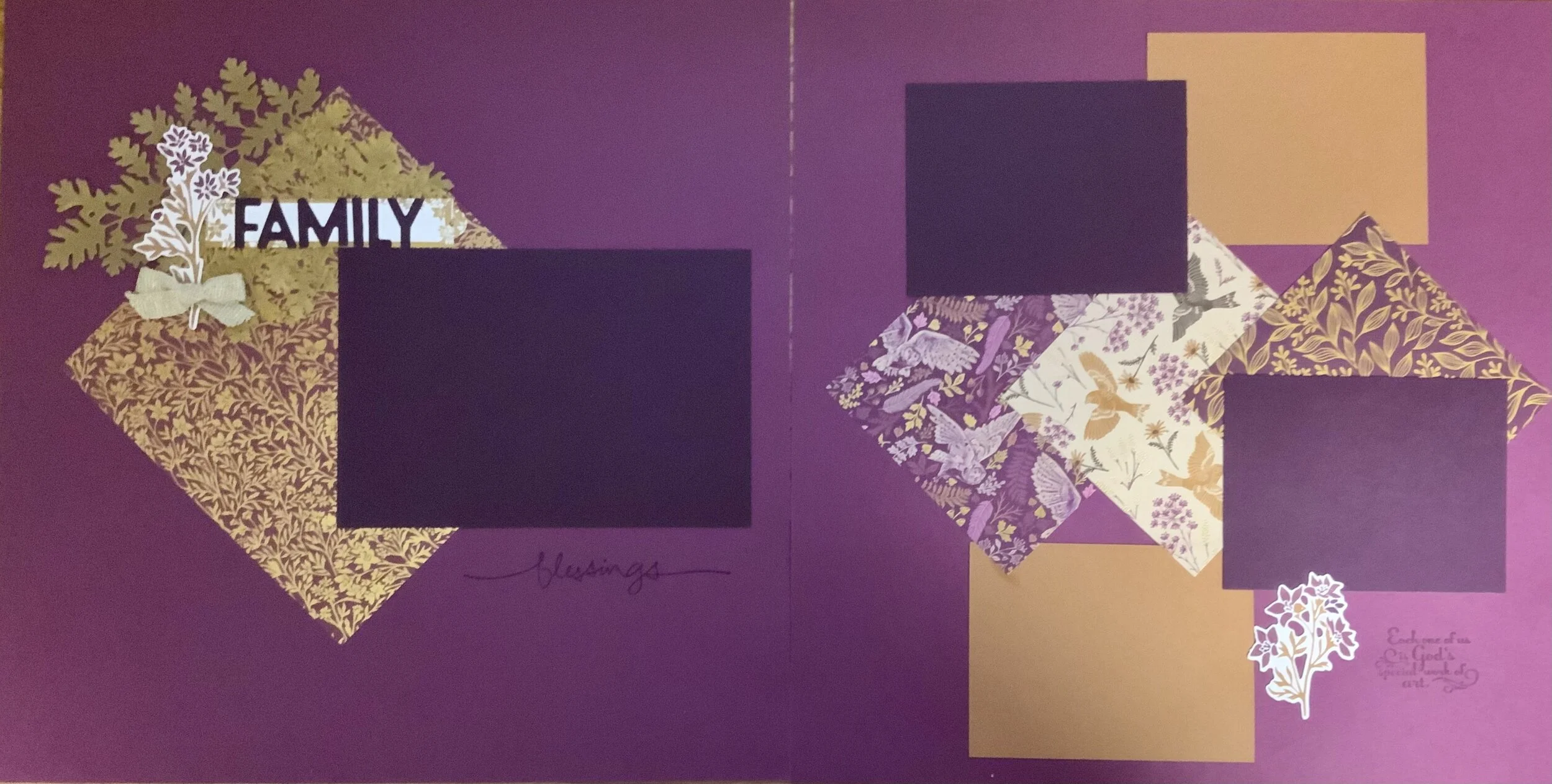 The colors are so rich and luscious in this suite! I just love looking at the colors! Previously, I showed you a card we made at Creative Escape and now, here are a few of the scrapbook spreads we made using Blackberry Beauty Suite