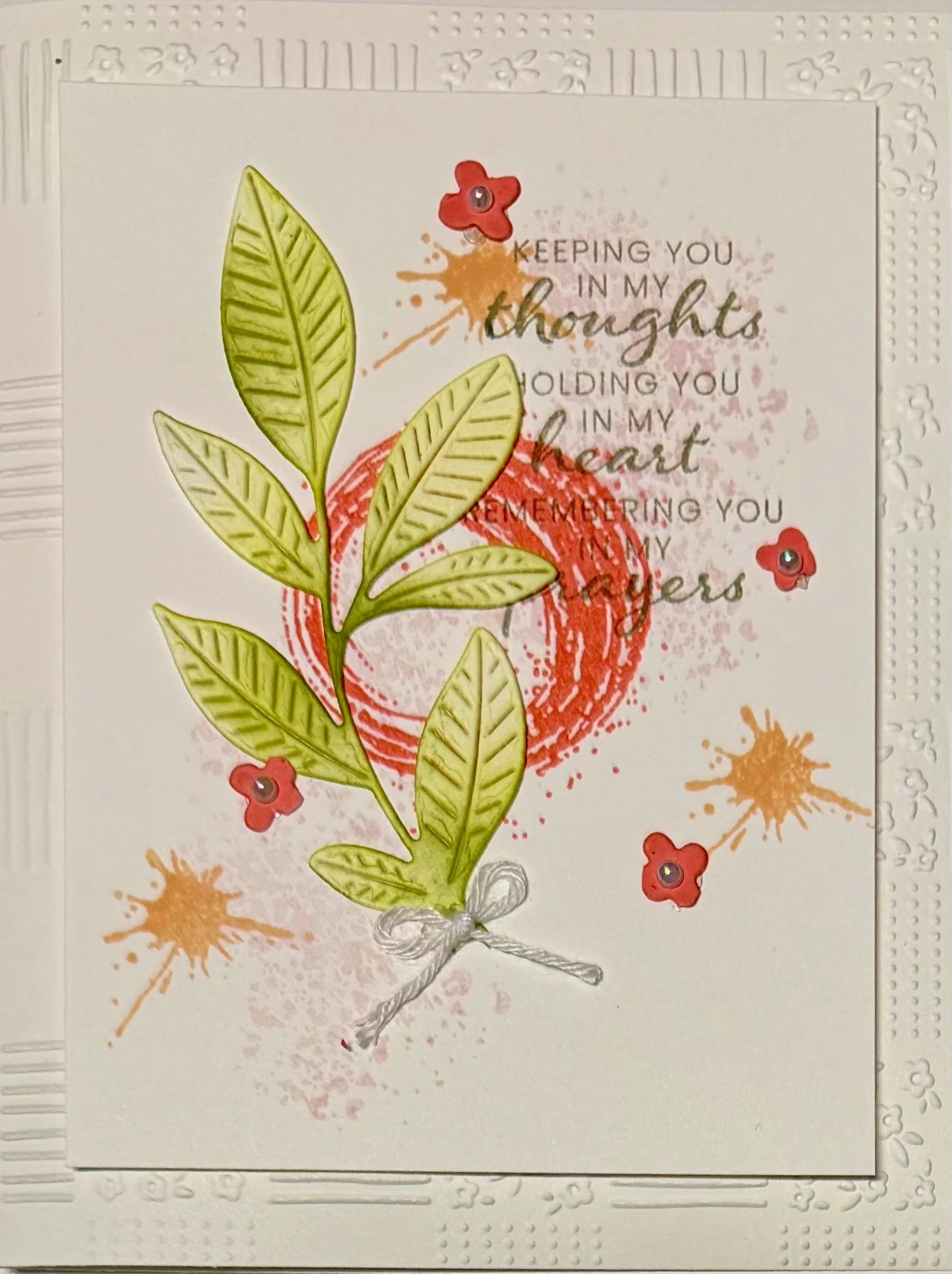 And here is the girly card using Tools & Textures along with Natures’s Symphony leaf die and Forever Florals Die for tiny flower. Colors of inks: Flirty Flamingo, Petal Pink, Bubble Bath, Granny Apple Green for leaf die and Gray Granite ink for sentiment.