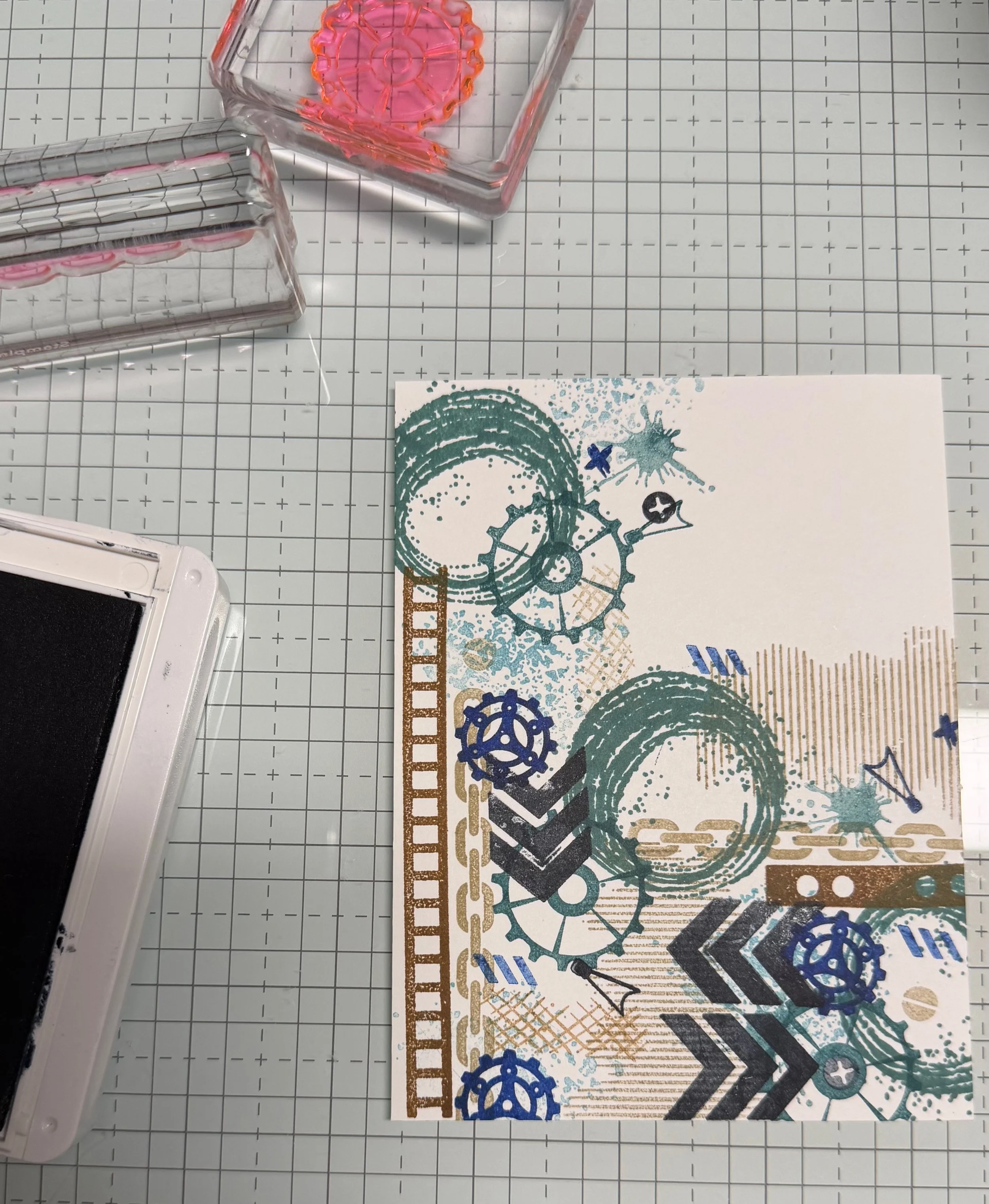 Some of these ink colors were stamped off and then stamped on the card and others directly as inked….just randomly - have fun!