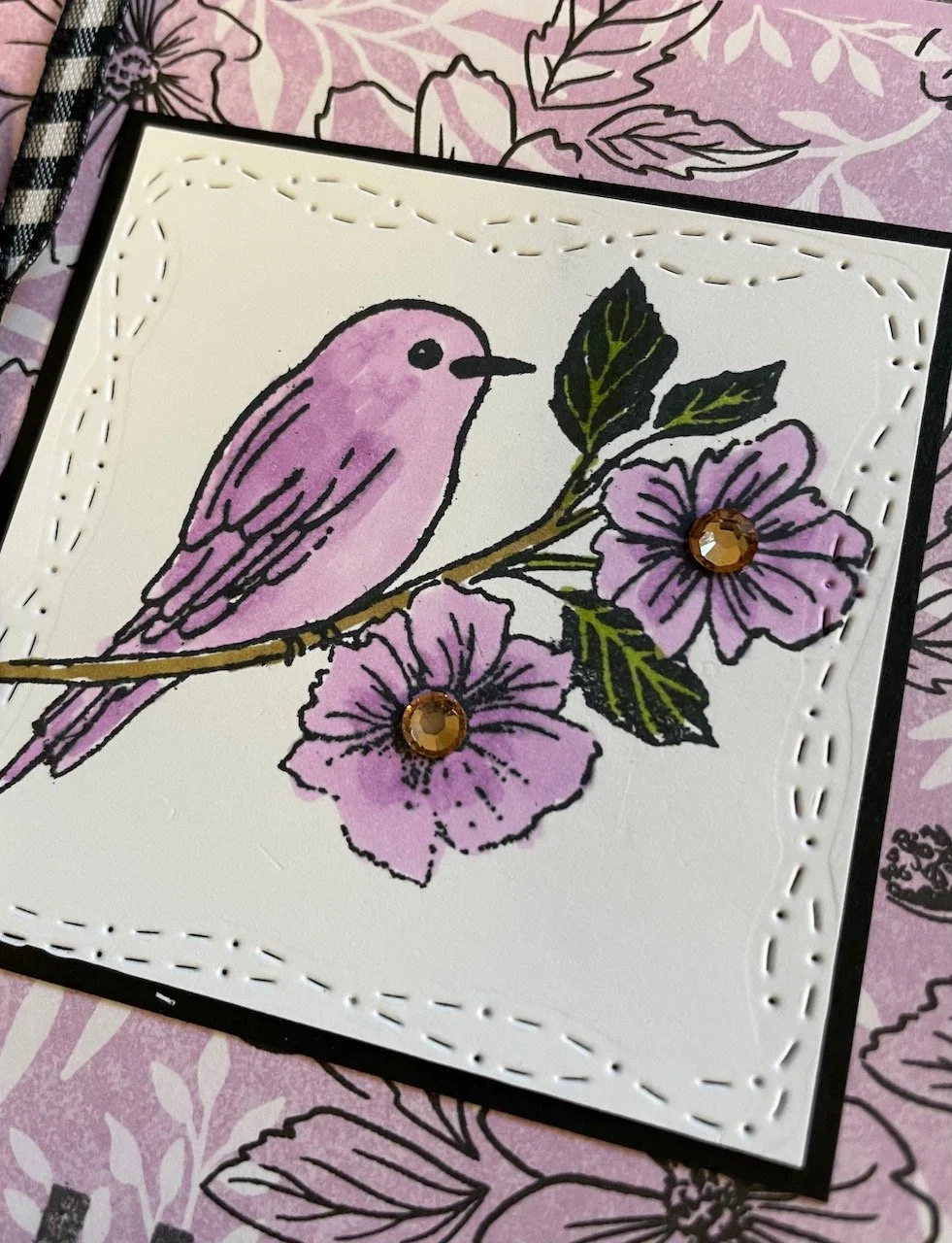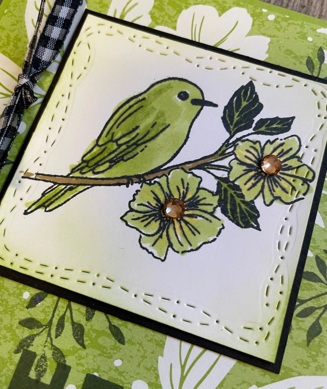 Use a Blending Brush #153611 to add a little Granny Apple Green ink around the edges of your bird image and matte it with