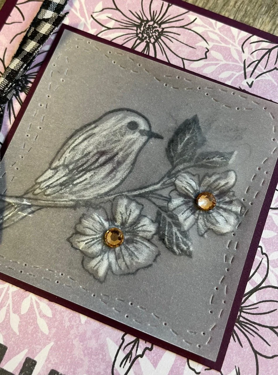 Here are the other versions of this template. I had to use the purples! And one of my favorite techniques, although I don’t use it all that much is to emboss with a stylus on vellum.