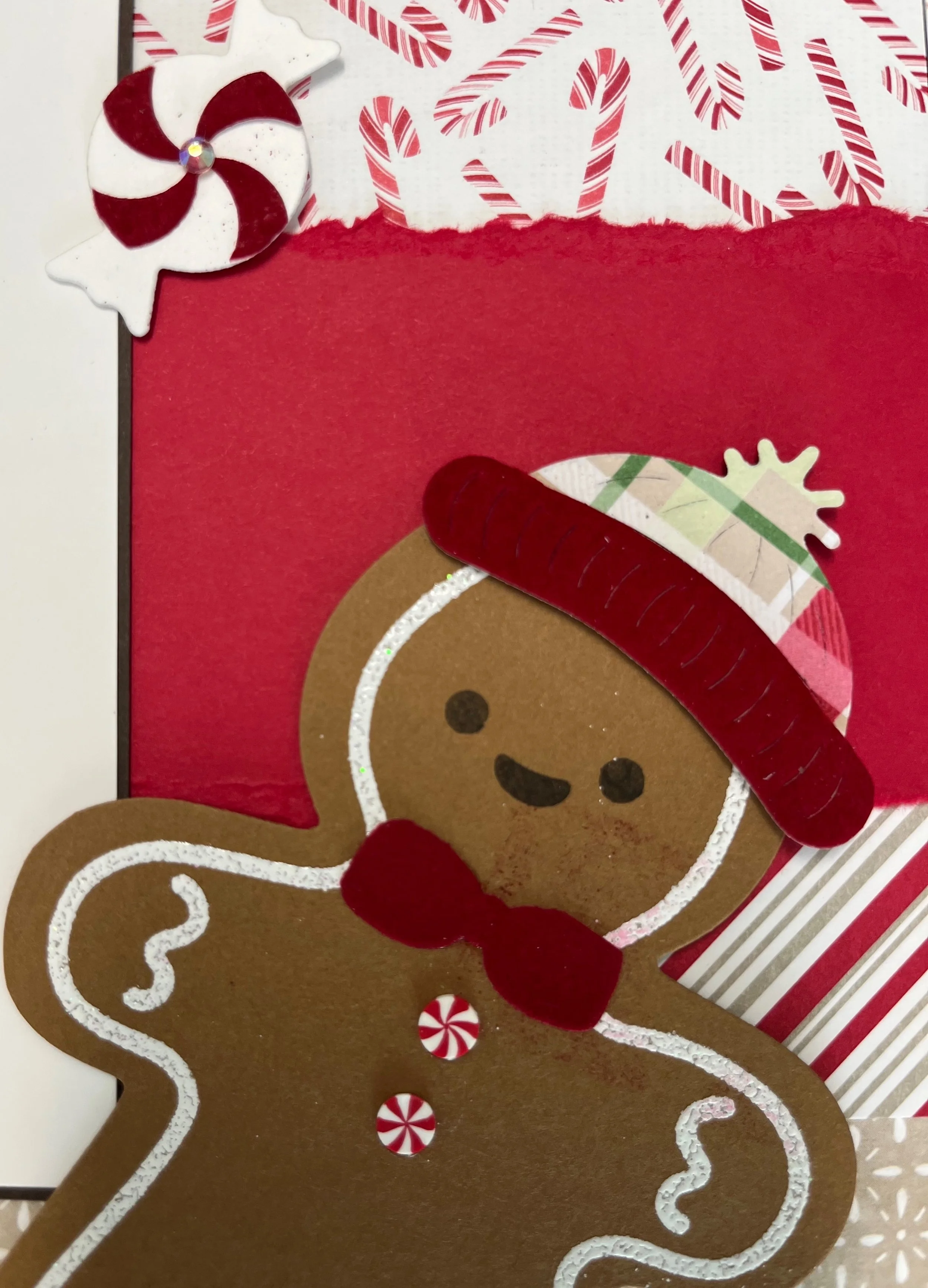 gingerbread man is stamped in White Craft ink and then use White Embossing powder and heat….then die cut using Gingerbread Dies