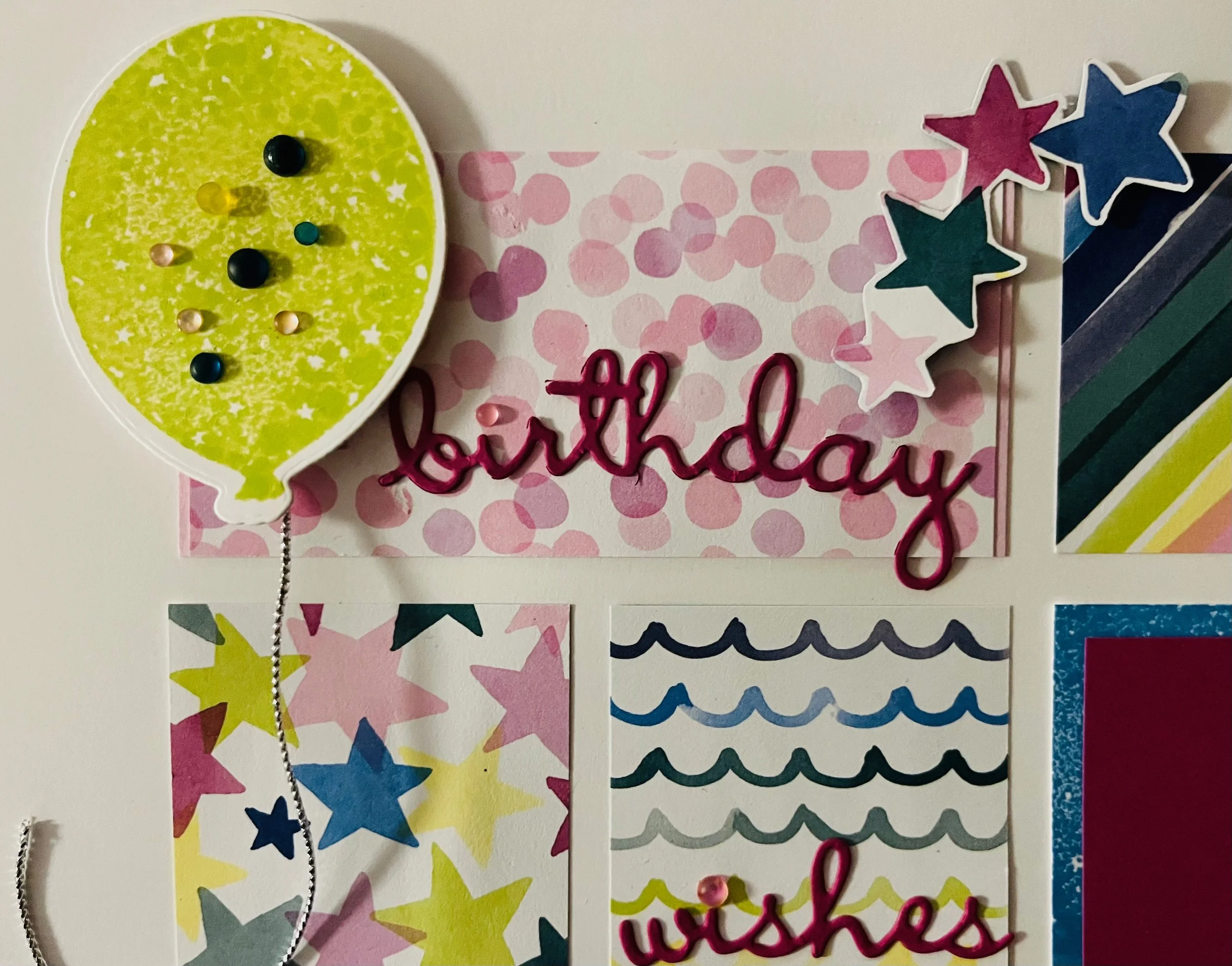 Lots of balloons for these party pages! You will notice we also added some gem elements. These are the Loose Frosted Dots item #161153 picture below and click on image to see item