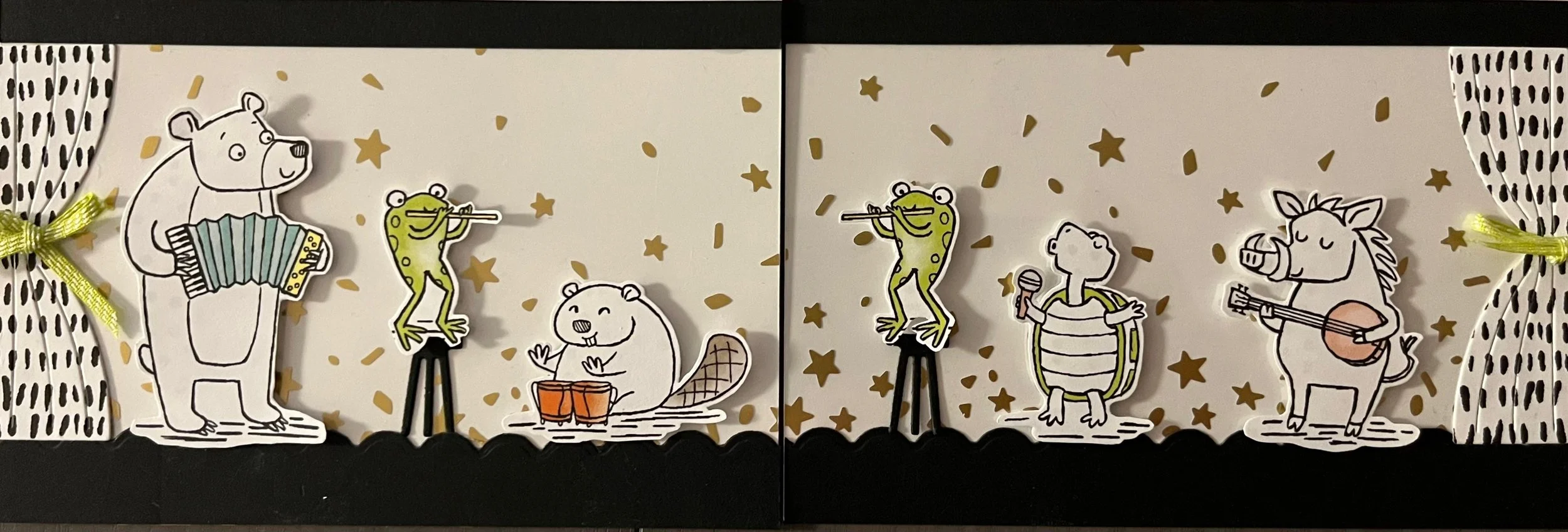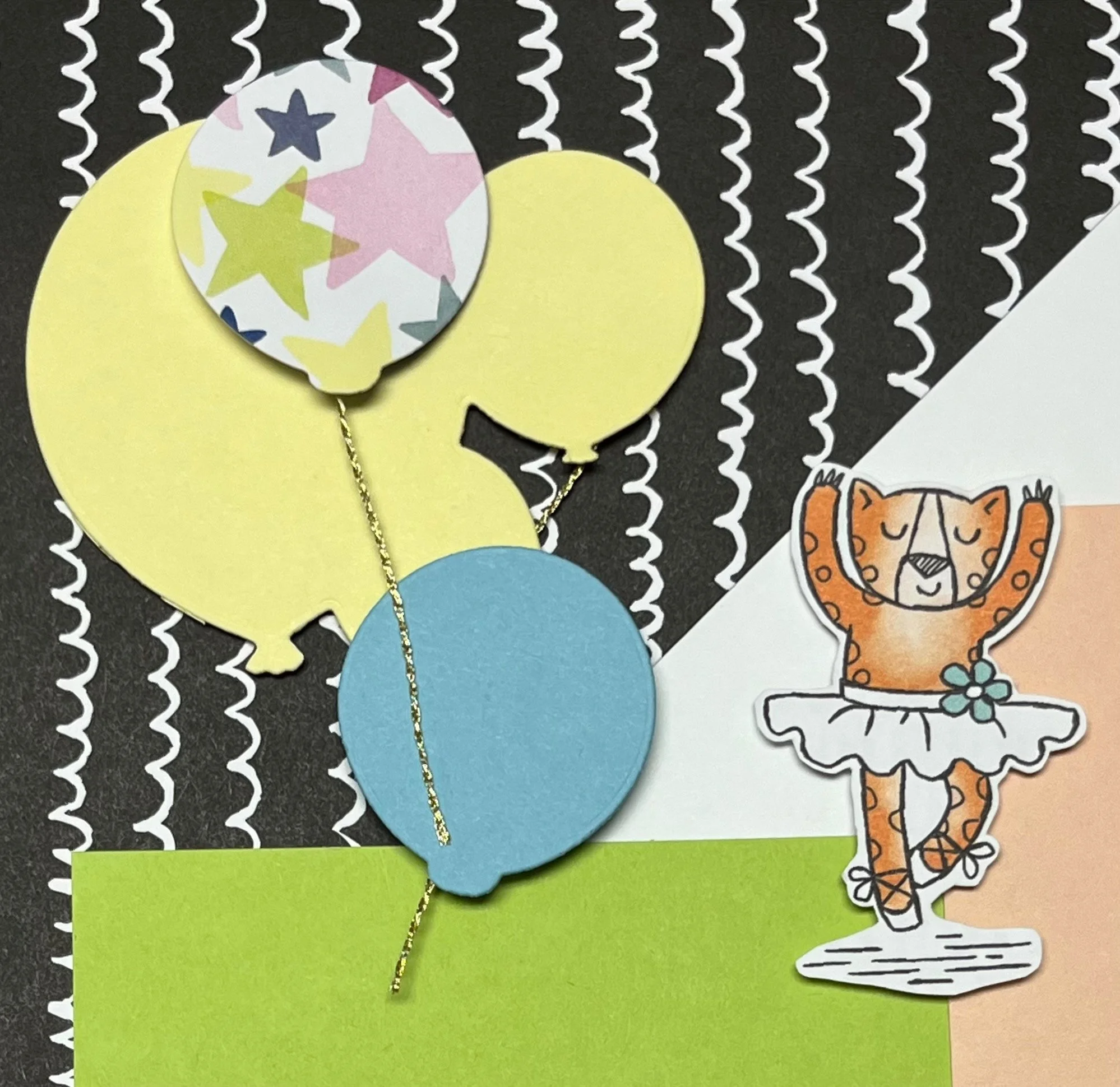 I have a a “ton” of fun with Zany Zoo little critters! Those little critters party, play sports, make cupcakes, go to the ballet, sing and camp…there are 6 different pages in this Designer Series Paper as well as stamps to match the correct die size. On each of the 6 pages of DSP, there is one animal that has a die to cut out DSP or stamp.
