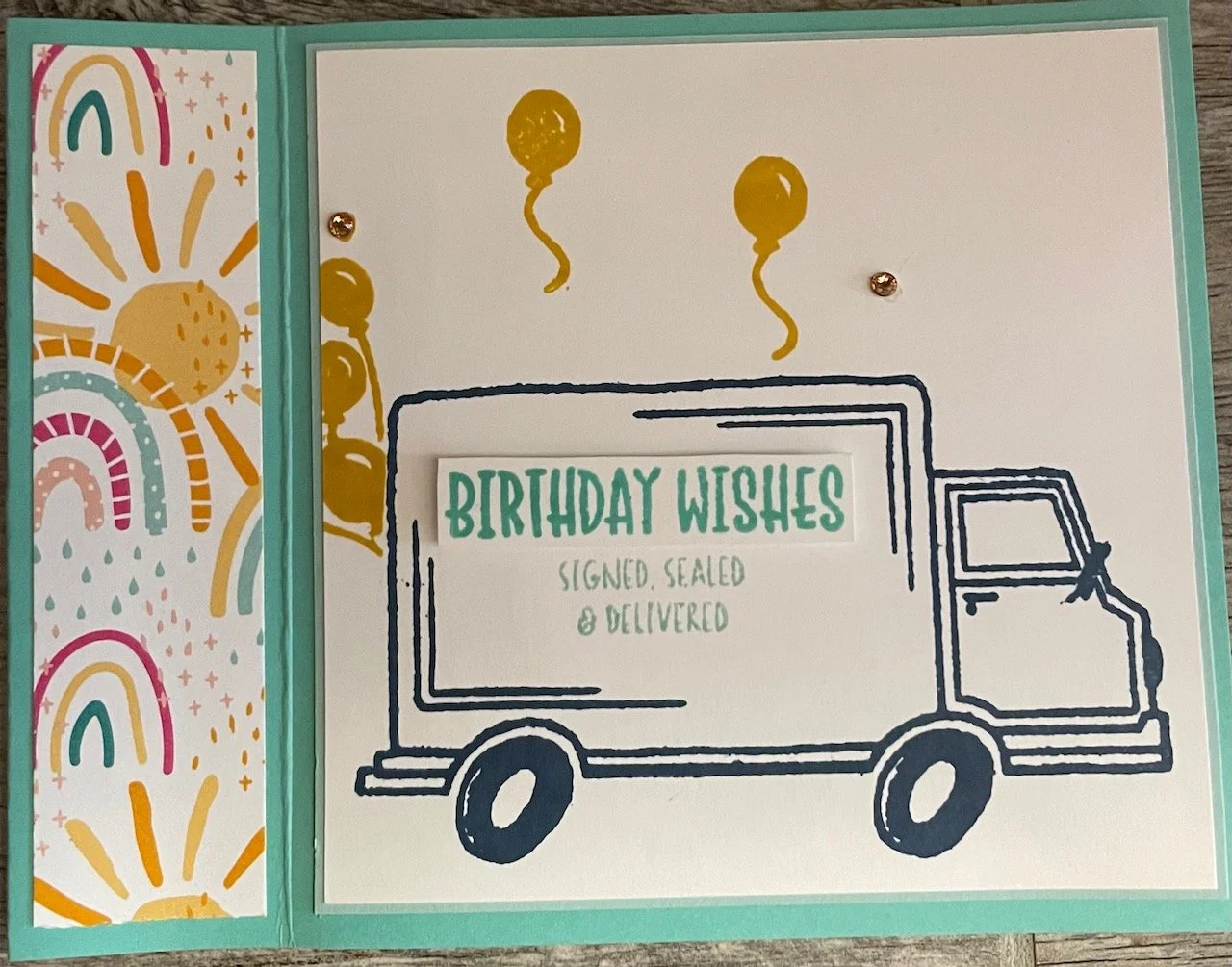 This past Saturday, we had a second Stampin’ Blitz! The theme was Birthday cards and we all had a lot of fun making cards, being together, and eating! Take a look at some of the highlights and then below are all the birthday cards we made. Be sure to click on the first picture to open up to see all the pictures in a larger format.