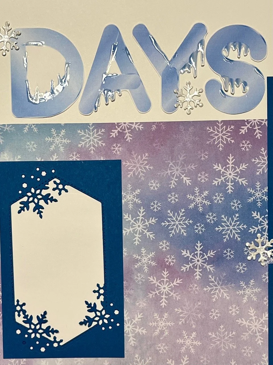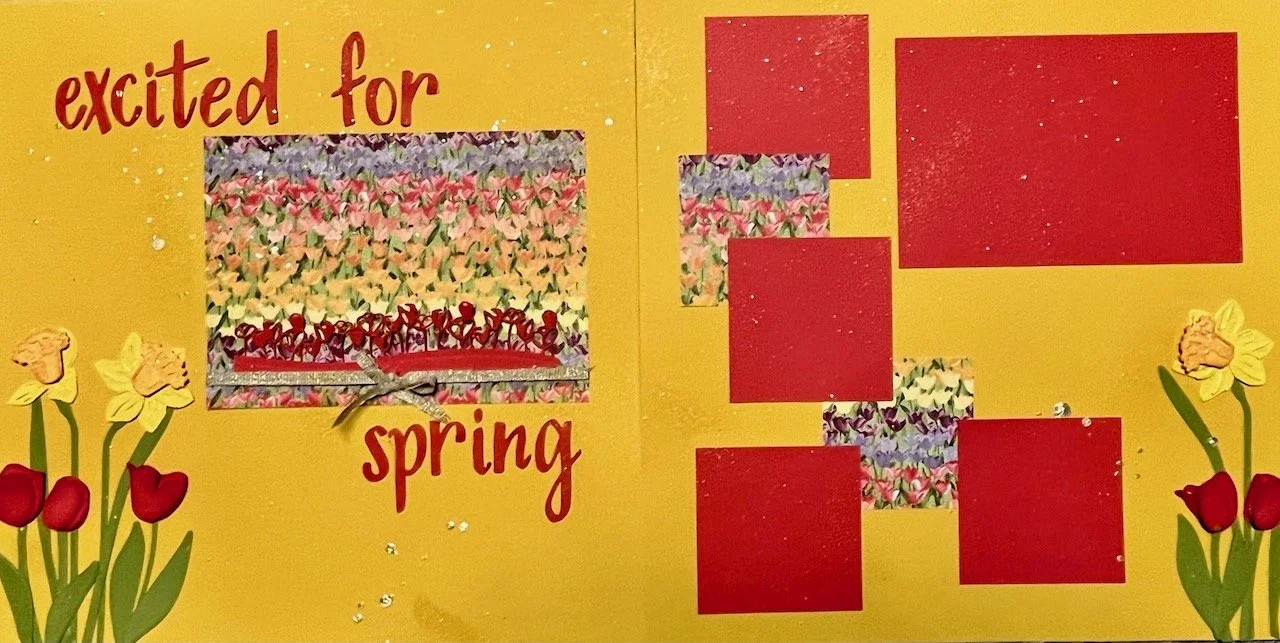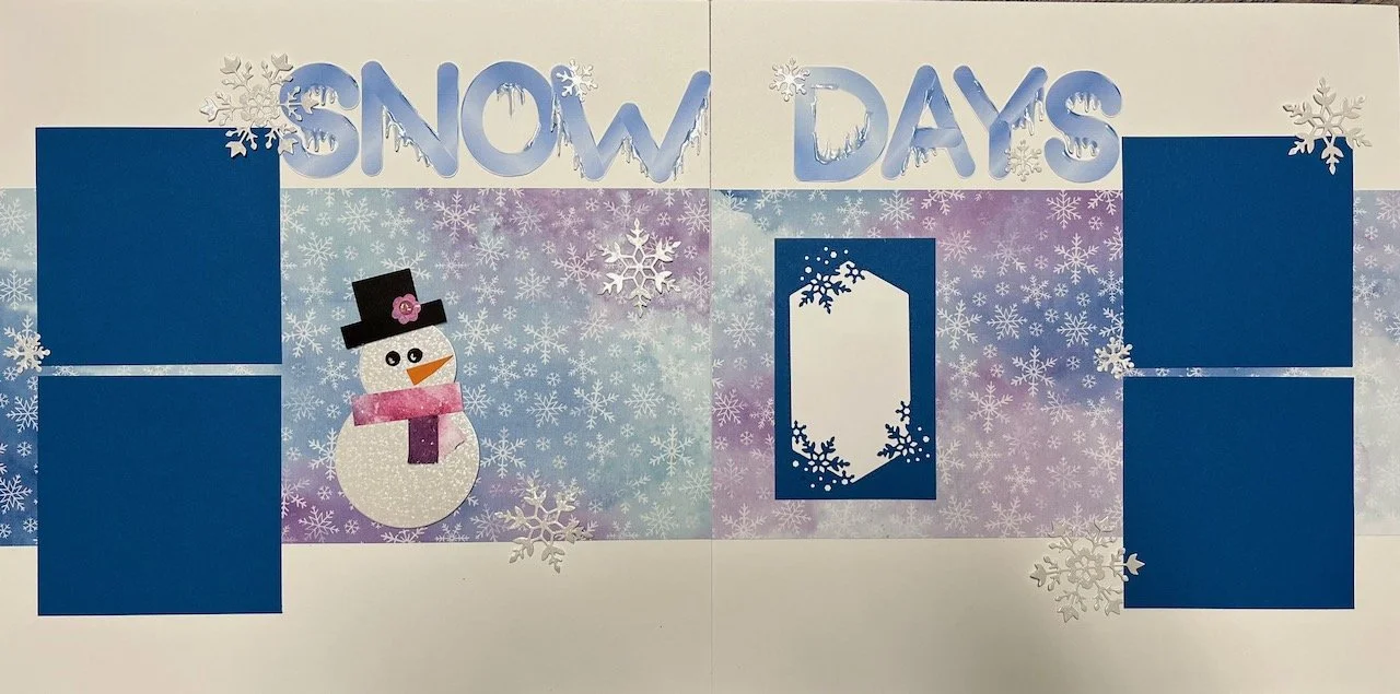 This month for scrapbooking we went from spring fever to icy snow for our 2 page spreads! I like to invite you to join us next month for a night of chatter and scrapping!